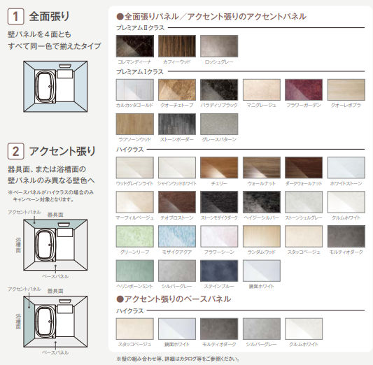 実は壁パネルの壁柄(グレード)や張り方によって、価格が変わります。せっかくのリフォーム、気に入った壁柄のお風呂を設置したいですよね。
