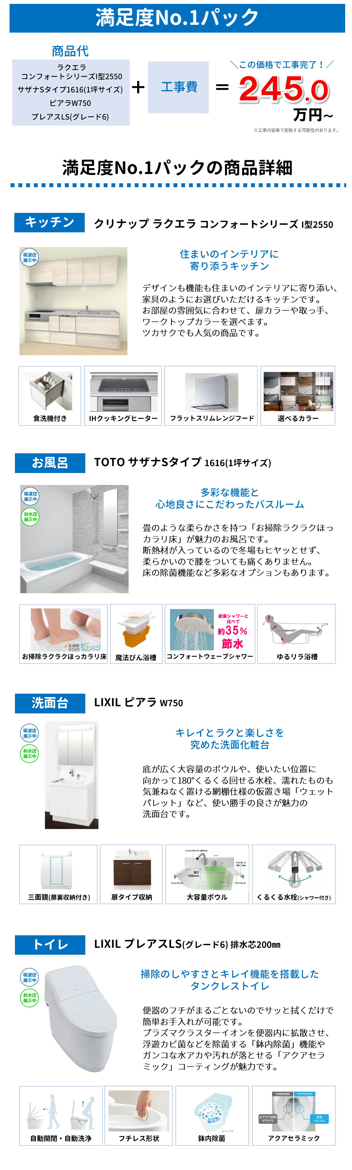 水廻りリフォームパック 組み合わせ例