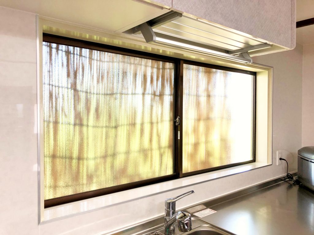 キッチン正面の窓は、底面にキッチンパネルを貼って小物などを置けるようにさせていただきました。