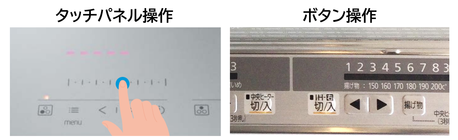 「ボタン式」の場合、しっかりボタンを押して操作できるので、操作の分かりやすさが魅力です。また、ボタン式のIHクッキングヒーターの方が、お手ごろ価格な商品が多い物魅力的です。