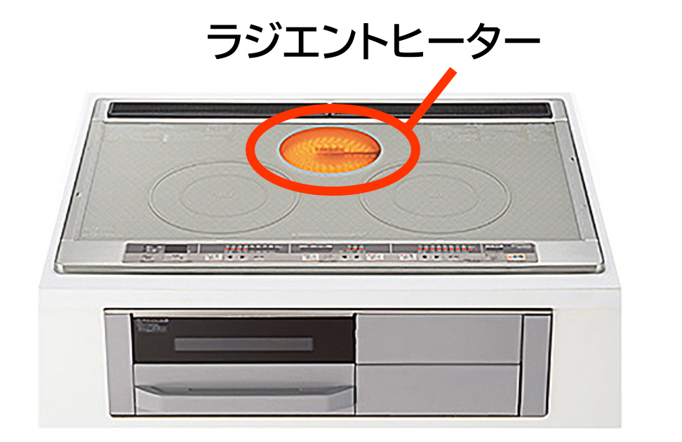 ラジエントヒーターとは、電気を通し調理器具自体を温めるIHと異なり、本体が熱を発して調理器具を温めます。そのため、IHでは使用することのできないアルミ鍋や土鍋、ガラス鍋なども使用することができます。