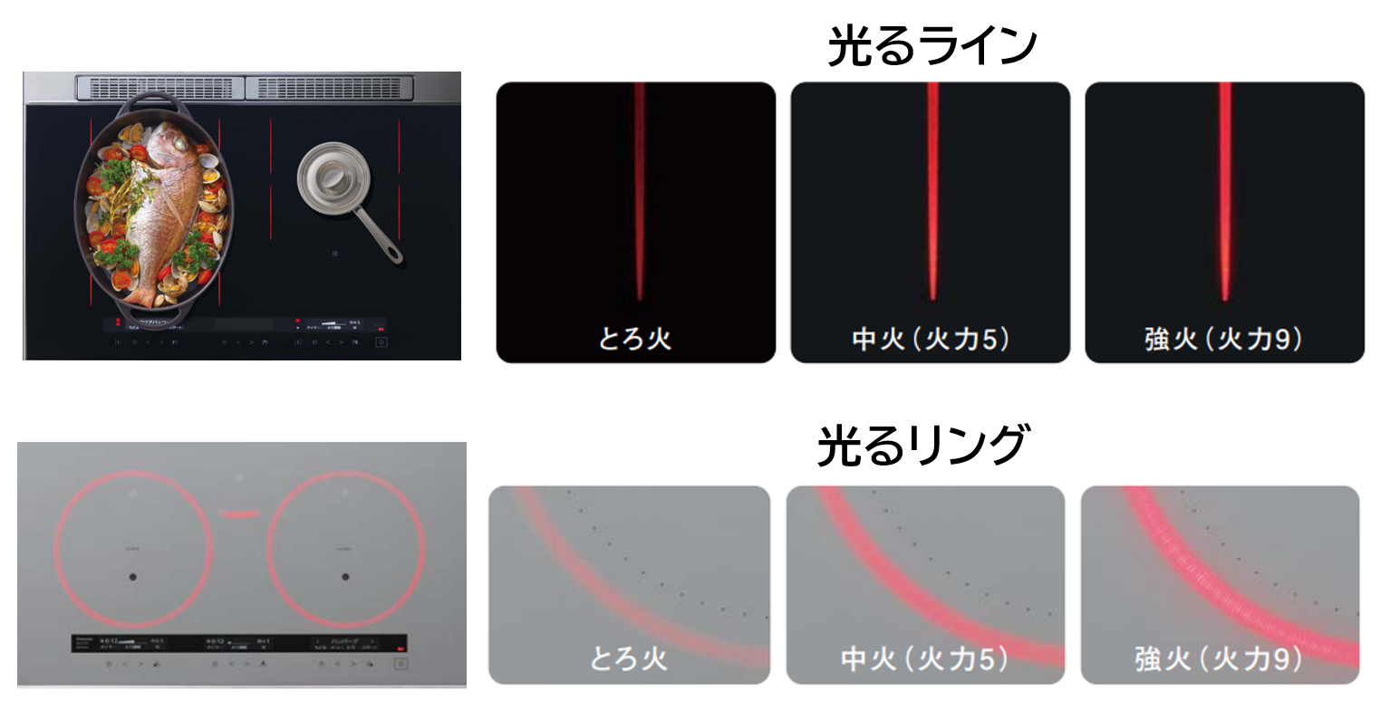 その問題を解決するのが「光るライン」「光るリング」です。こちらの機能はパナソニックの商品でお選びいただけます。