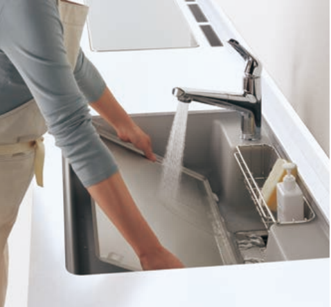 油を最初に受ける汚れやすい整流板は、シンクに入る大きさなので、整流板がシンクからはみ出して床やキッチン周りが濡れてしまう心配もなくなりました。