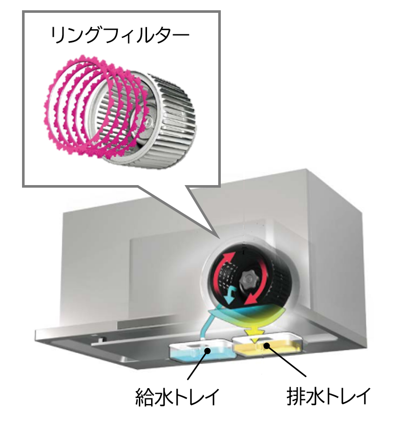 洗エールレンジフードは、内部のファンフィルターを自動で洗浄する機能を持ったレンジフードです。