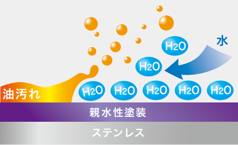 また、リーフプレートは親水性塗装が施されており、水となじみやすくなっています。プレートと汚れの間に水が入り込み、簡単に汚れが落とせますよ。