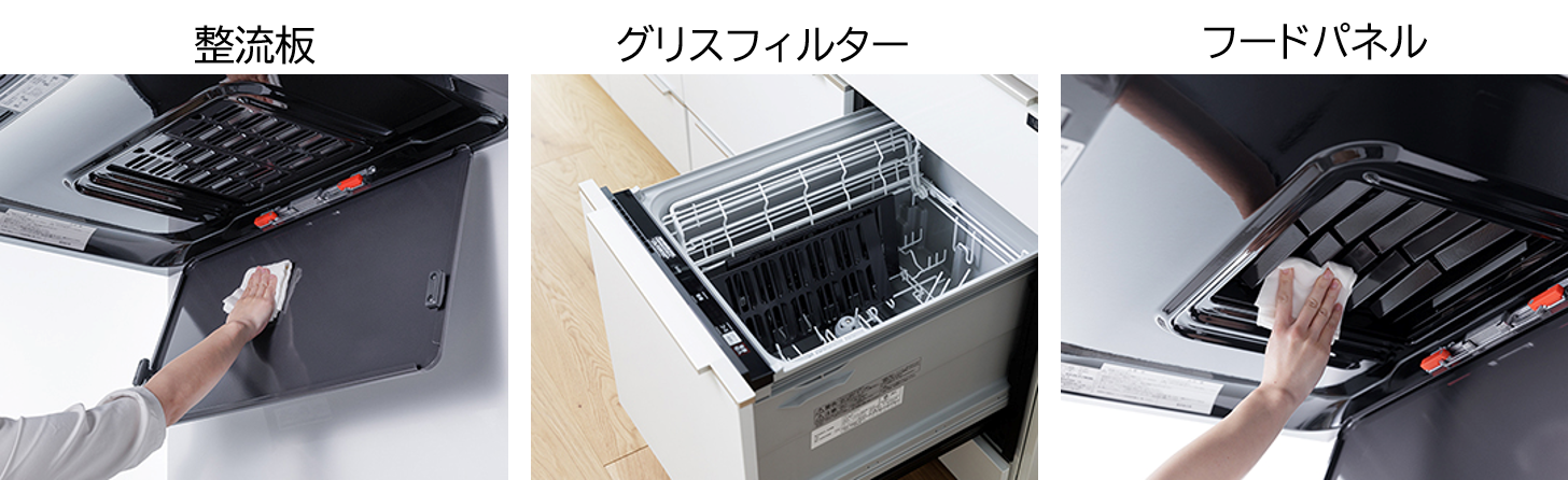 日常的にお手入れが必要なパーツを減らしたレンジフードです。