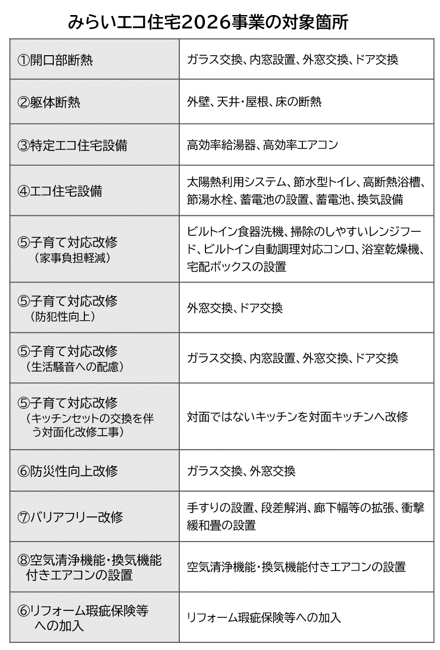 住まいのあらゆるリフォームが対象!『みらいエコ住宅2026事業』