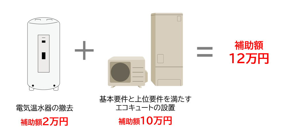 また、補助金対象機器の設置と一緒に電気温水器の撤去工事を行った場合は追加で補助金がもらえます。