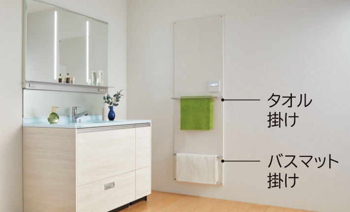また、パネルにはタオル掛けも付属していますので、タオルやマットを乾かすためにもお使いいただける便利な優れものなんです!
