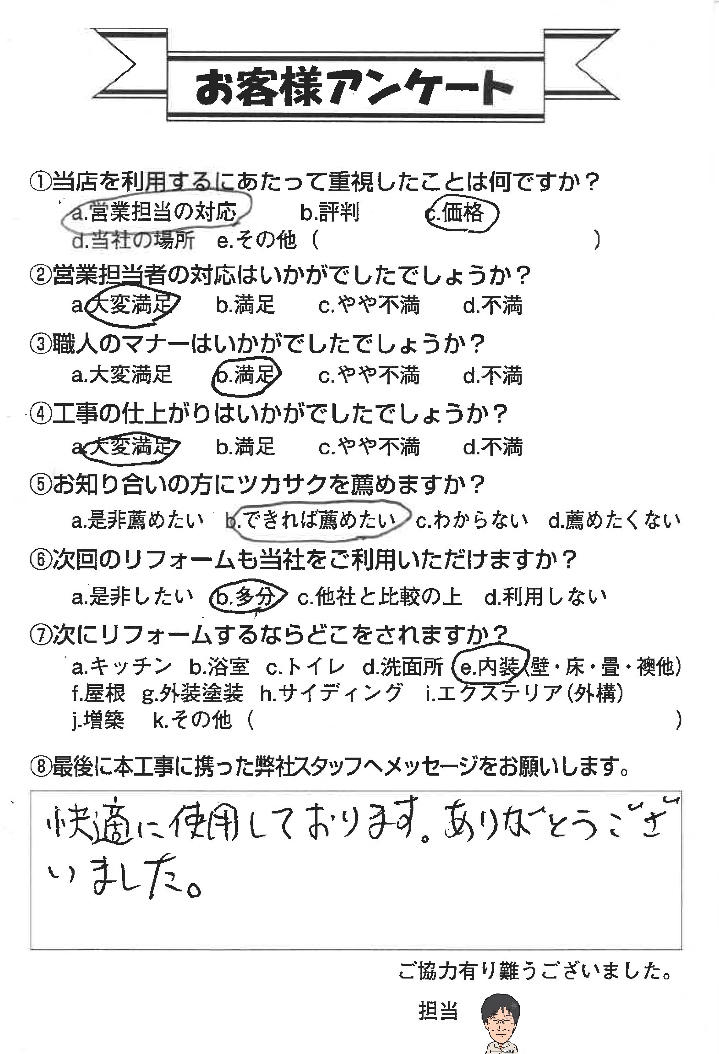 ご依頼いただきありがとうございました。 快適にお使いいただけているということで、こちらも大変嬉しく思います。またお困りのことなどがございましたら、お気軽にご相談ください。
